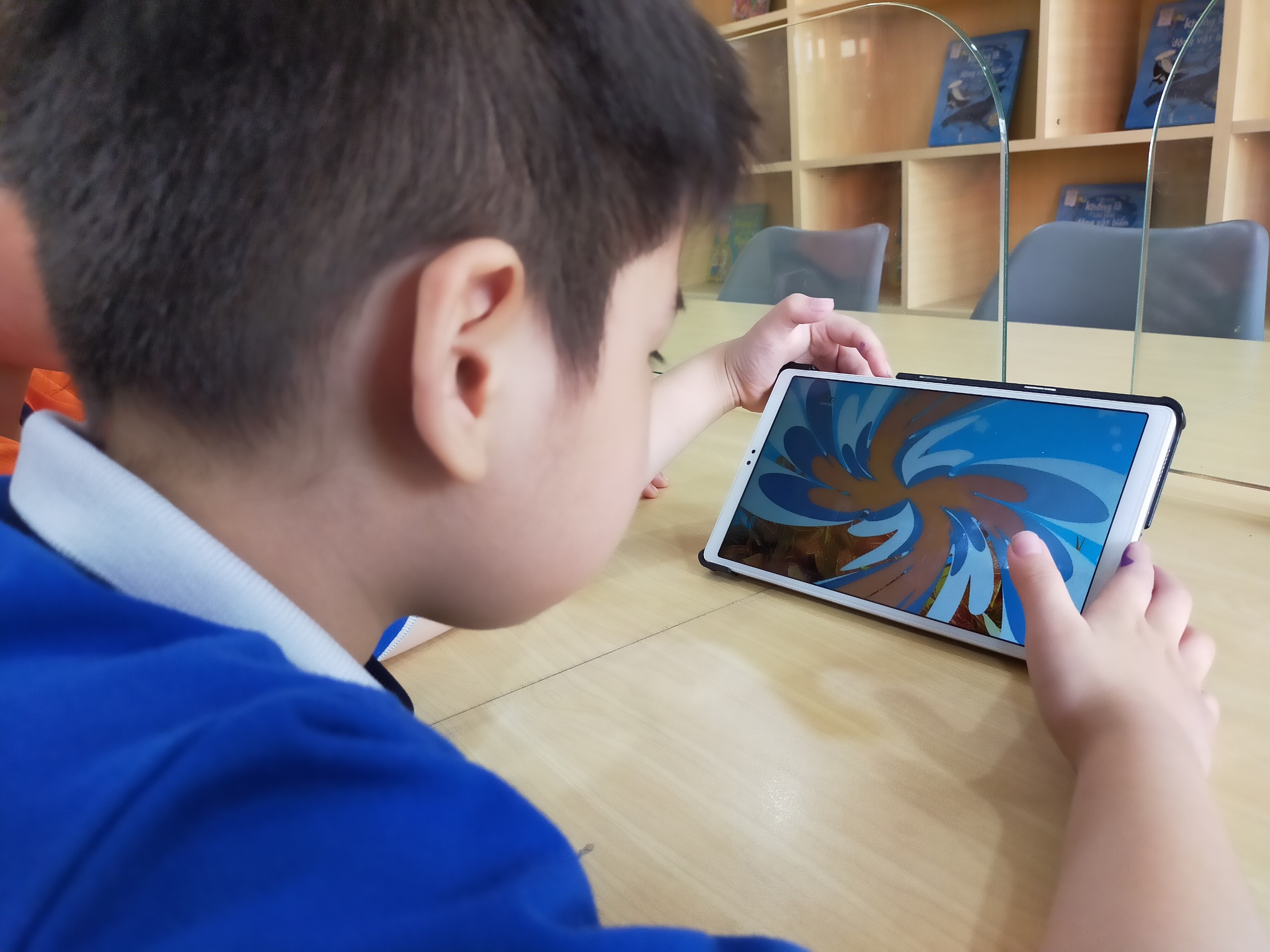 Học sinh thích thú tìm hiểu thư viện điện tử tiểu học Đô thị Sài Đồng